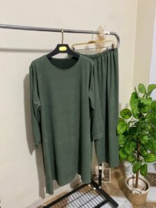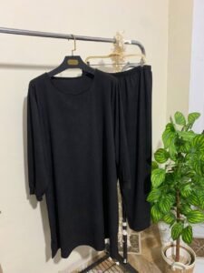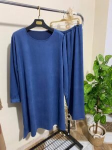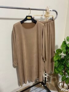 • يتكوّن من قطعتين: تونيك طويل + سروال واسع