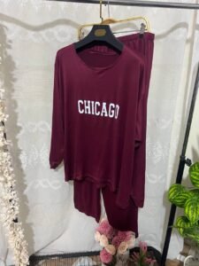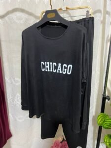 Adoptez un look moderne et confortable avec cet ensemble femme “CHICAGO”, parfait pour vos journées détente ou vos sorties casual. Composé d’un haut à manches longues et d’un pantalon fluide assorti, cet ensemble allie style sportif et confort absolu. Disponible en noir classique et bordeaux tendance, il se distingue par son imprimé blanc “CHICAGO” à l’avant, pour une touche urbaine et dynamique.